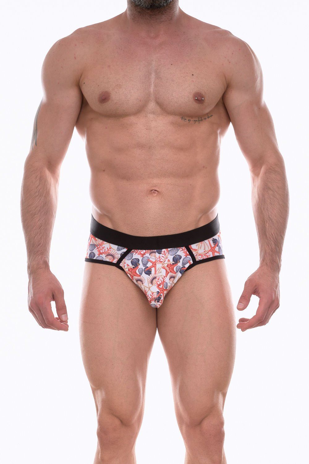 Белые мужские трусы-джоки с морским принтом.