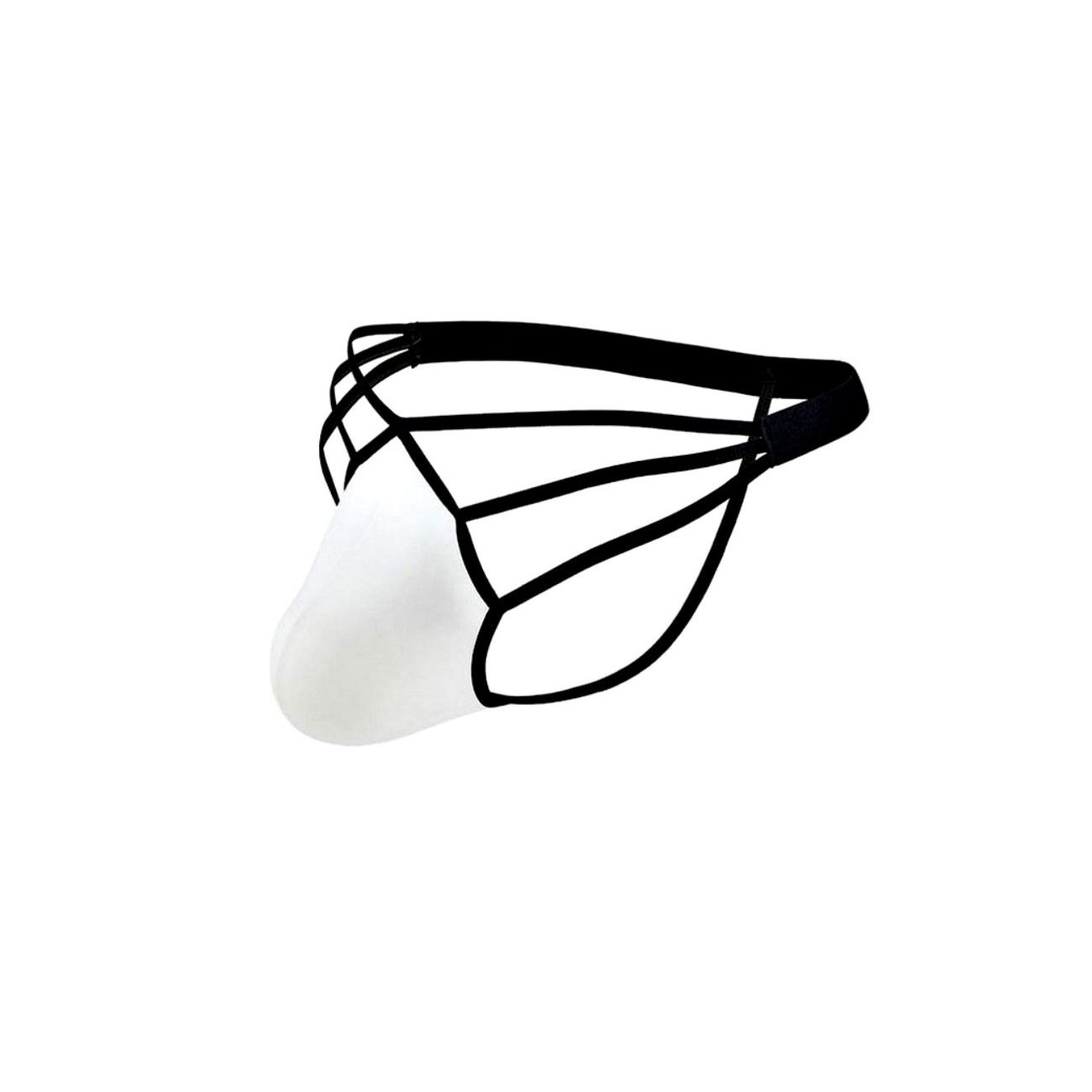 Белые сексуальные трусы-стринги на тонких черных бретелях.