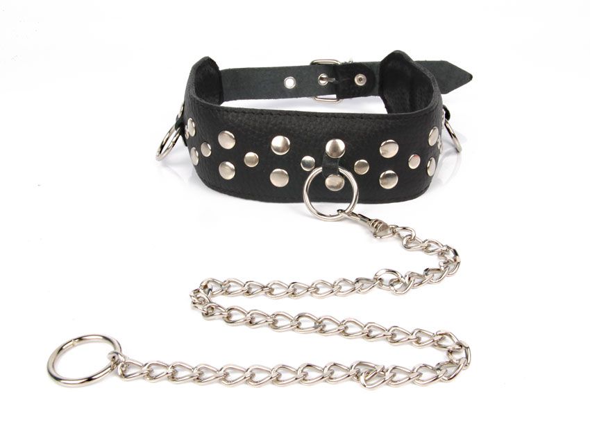 Ошейник-поводок с заклепками и цепочкой из металла с колечком