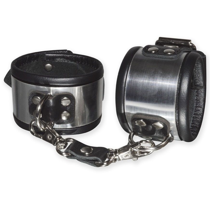 Эффектные серебристо-черные наручники с металлическим блеском