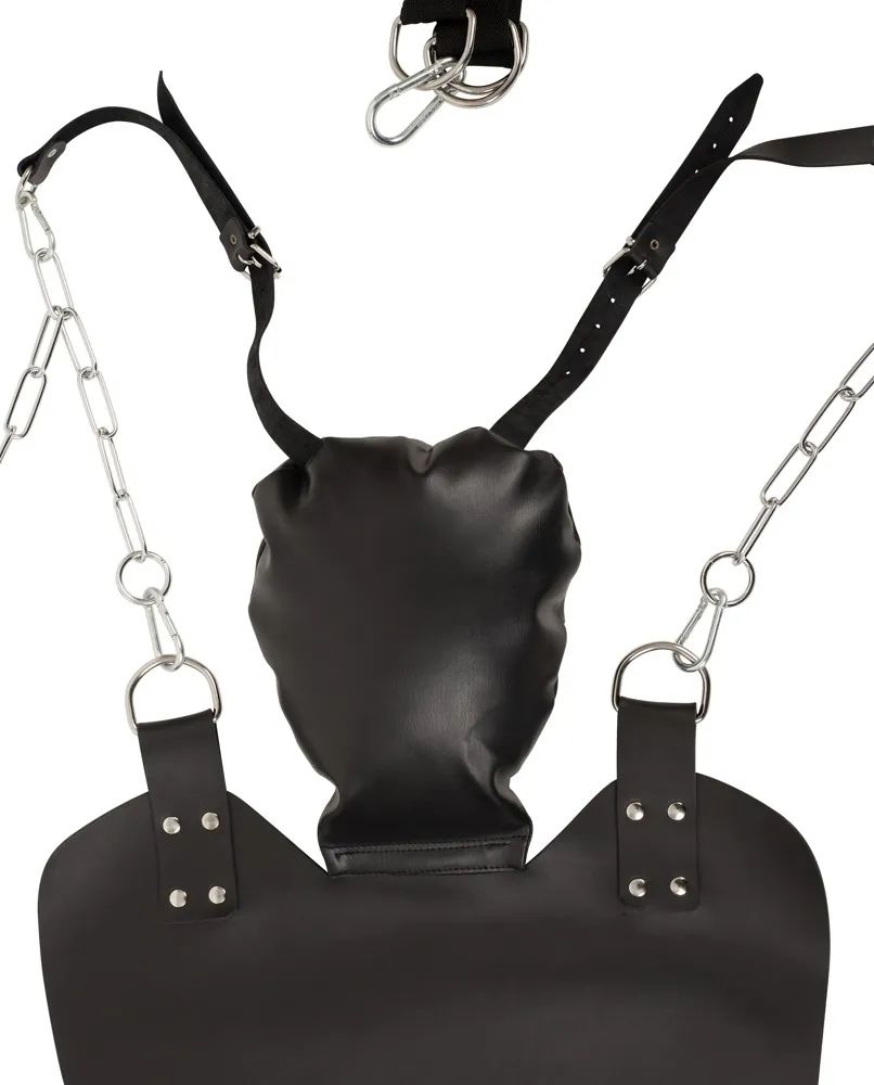 • Прочная конструкция: прочные цепи (каждая длиной 92 см) на полукольце толщиной 2,7 см, прочные ремни (каждый длиной 73 см) для крепления. • Лежак сделан из толстой кожи, имеет длину около 75 см, ширину 49 см и предлагает достаточно места для комфортной игры. • Мягкая подушка для головы: размер 32 см x 24 см, индивидуально регулируемый угол наклона для лежачего или сидячего положения. • Есть 2 петли для ног/рук: обеспечивают надежную фиксацию и могут по-разному прикрепляться к цепям с помощью карабина.