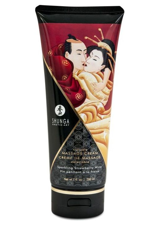 Массажный крем для тела с изысканным ароматом шампанского и клубники. Съедобный, не содержит сахара. Дарит коже гладкость и увлажнение, обеспечивает длительное скольжение. Нежирный, дарит ощущение свежести, превращает тело партнёра в лакомство.